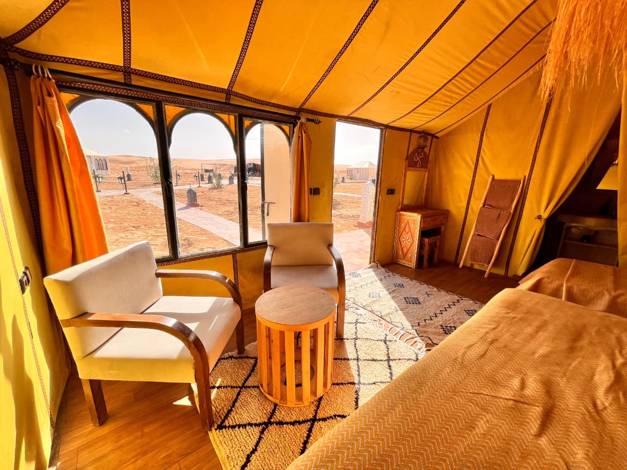 | Luxury | 140€ | Private room + Luxury desert tent with private shower, private toilet & air conditioning |